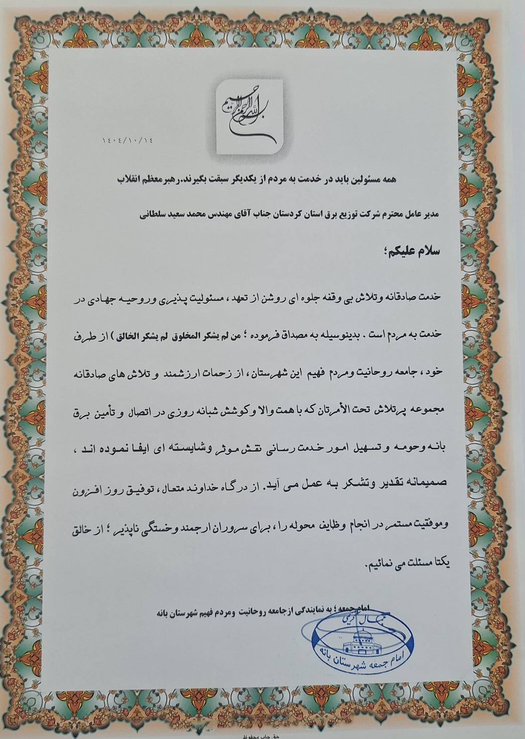 در آستانه فرارسیدن هفته بسیج، محمدسعید سلطانی، مدیرعامل شرکت توزیع نیروی برق استان کردستان، از برنامههای متنوع این شرکت به مناسبت گرامیداشت هفته بسیج خبر داد و گفت: هفته بسیج که از ۳۰ آبان ماه آغاز و تا ۶ آذر ماه ادامه خواهد داشت، فرصتی مناسب برای ارج نهادن به…